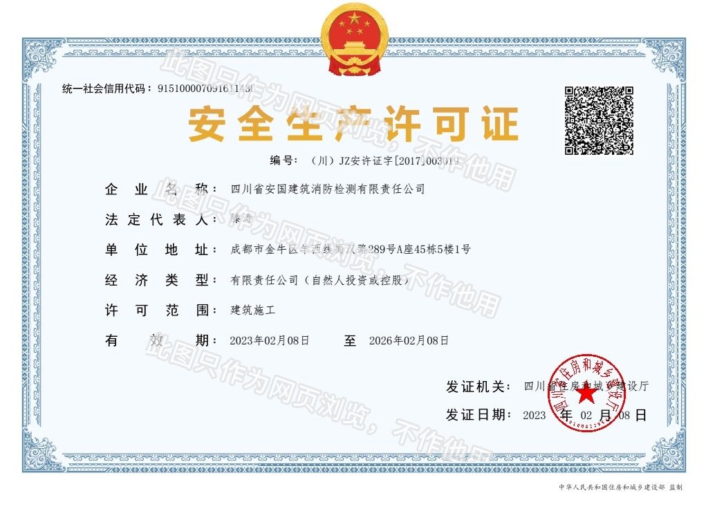 四川省安國建筑消防檢測有限責(zé)任公司,成立于1998年,經(jīng)四川省公安消防總隊批準(zhǔn),工商部門注冊的獨立法人單位。 公司具有建筑消防設(shè)施檢測、電氣防火安全檢測、維修、保養(yǎng)及技術(shù)咨詢一級資質(zhì)的中介技術(shù)服務(wù)機構(gòu),獲得CMA計量認(rèn)證。主要業(yè)務(wù)范圍是:接受建設(shè)單位或有關(guān)單位委托,承擔(dān)新建、改建、擴建建筑自動消防設(shè)施技術(shù)檢測、電氣防火安全檢測、以及承接建筑消防設(shè)施維護保養(yǎng),對已交付使用的建設(shè)消防設(shè)施的運行情況進行運行檢測,開展建筑消防設(shè)施的消防安全技術(shù)咨詢。公司設(shè)辦公室、總工辦、財務(wù)部、檢測部、維保部等職能機構(gòu),擁有一